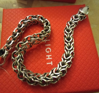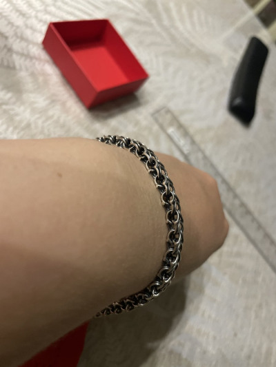 Браслет довольно обьёмный. На руке смотрится довольно интересно. Замочек крепкий