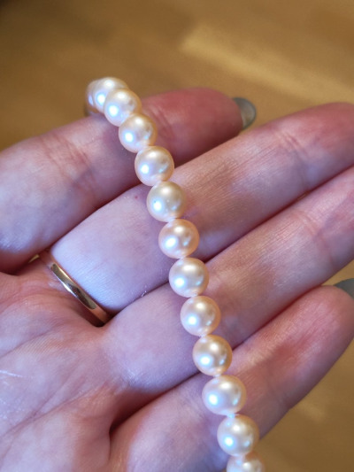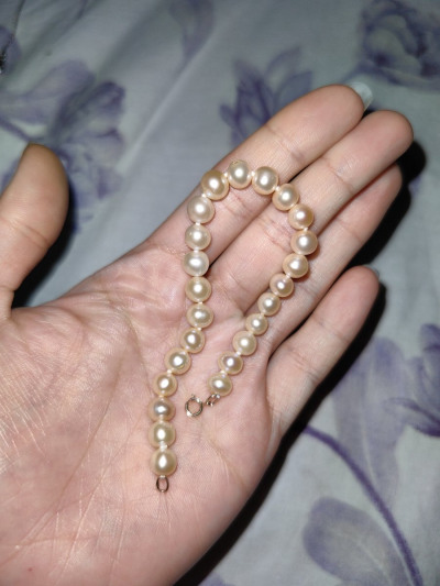 Люблю жемчуг.такого цвета ещё не было. Попросила мужа в подарок его купить.браслет красивый,бусины средние. Сняла звезду за замок..только с посторонней помощью его надеть..уж больно маленький