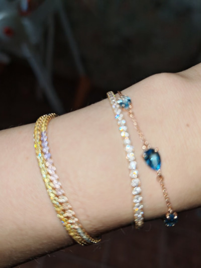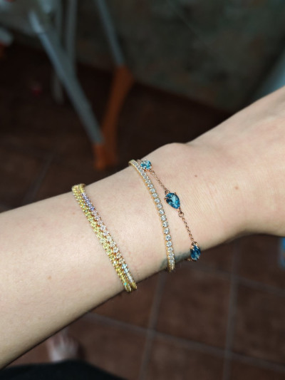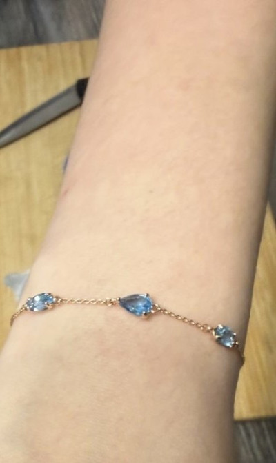Купила миленький браслетик с топазами. В паре с другим браслетом смотрится отлично. Очень нежный, яркие топазы.