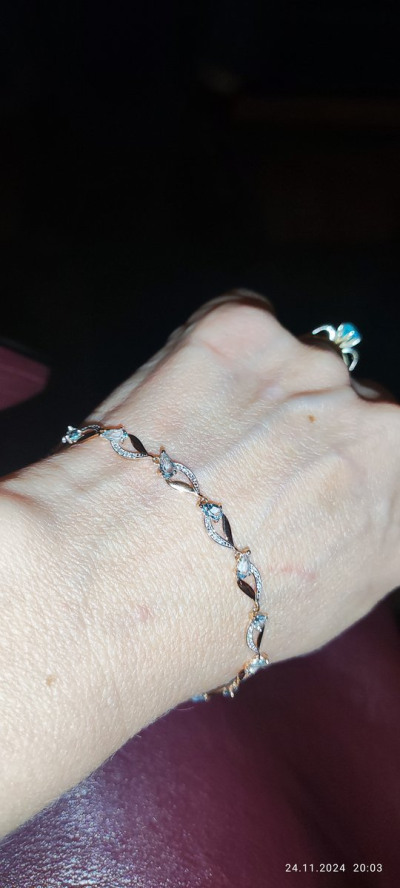 Очень нежный женственный браслетик. Идеально подошёл под кольцо с голубым топазом. Очень довольна подарком!
