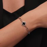 Браслет современного дизайна, изящно смотрится на тонком запястье. Есть дополнительные кольца для регулировки длины изделия. Брали на подарок, понравилось.