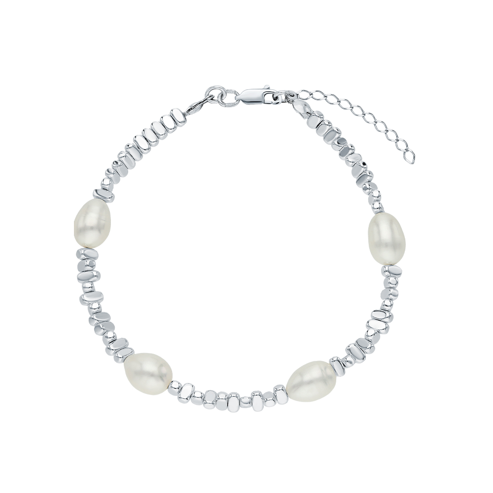 Серебряный браслет с жемчугом и марказитами