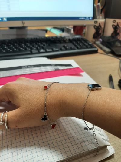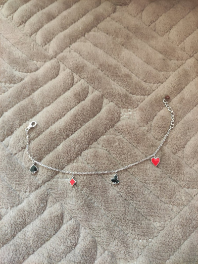 Оригинальный дизайн, изящные карточные масти, благодаря дополнительным звеньям застегнулся на мой 20 размер.