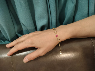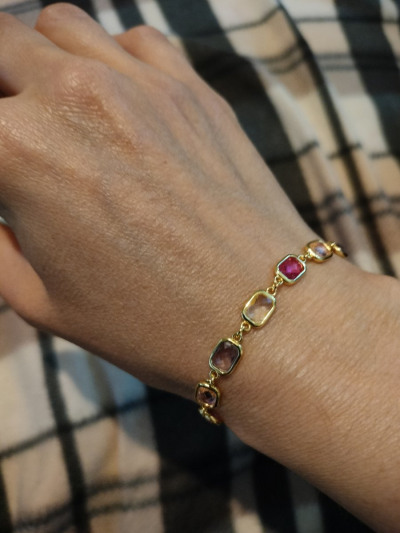 Симпатичный, летний браслет. Наяву каждое звено с камешком в оправе 7×5 мм, т.е. звенья некрупные. Подходит для тонкого запястья. Размер 19-22 в самый раз на 17 р-р.