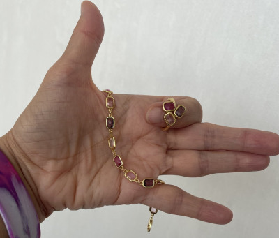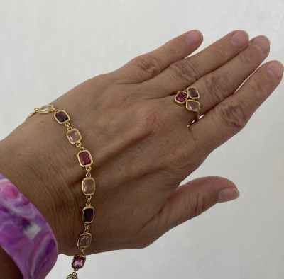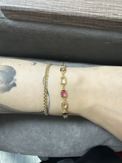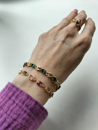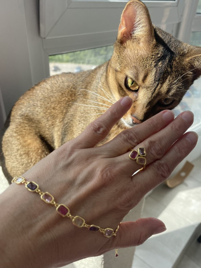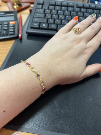 Очень мило и ярко смотрится с моим старым золотым браслетом. Брала вместе с кольцом и серёжками. Летом буду балдеть! ☺️
