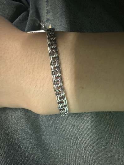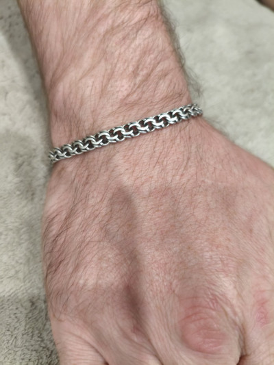 Брали на подарок к цепочке с таким же плетением "Гарибальди". 23 размер. Подошёл браслет идеально.