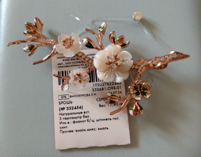 Брошь, вставка: перламутр белый;