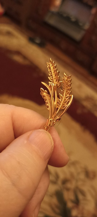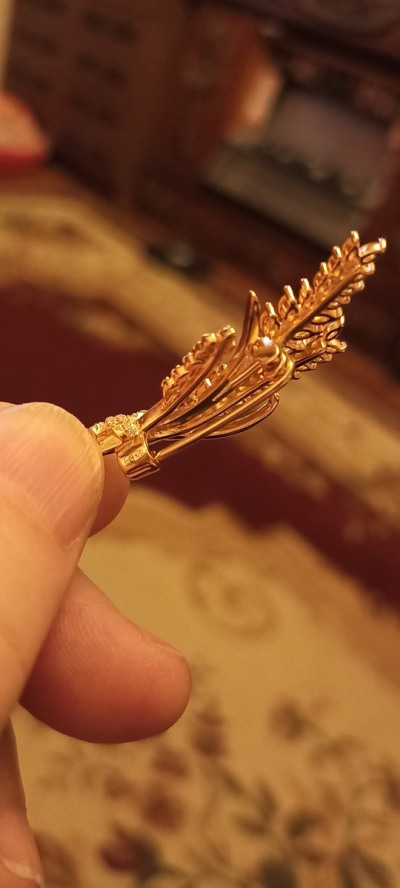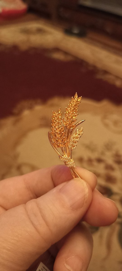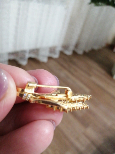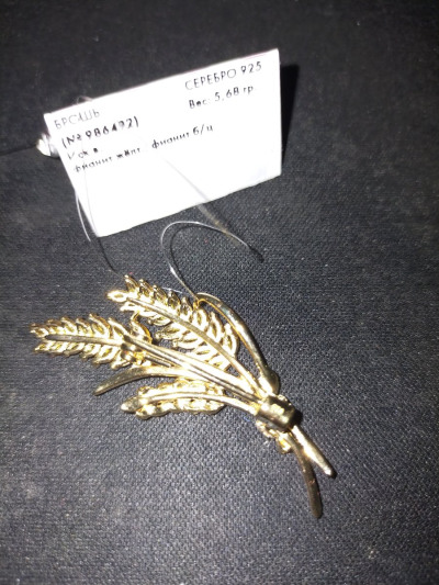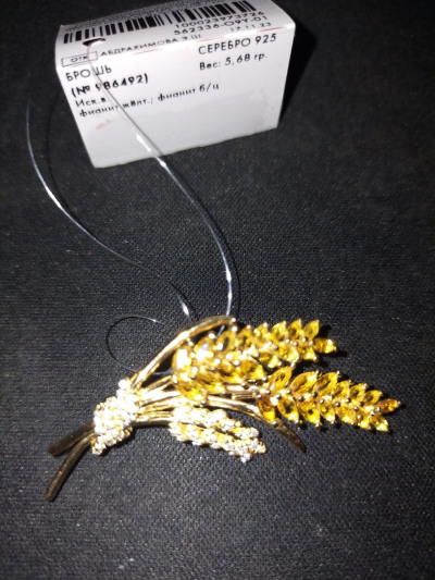 Брошь очень понравилась, красивая, нарядная! Серебряная, покрыта позолотой! Надёжная застежка!