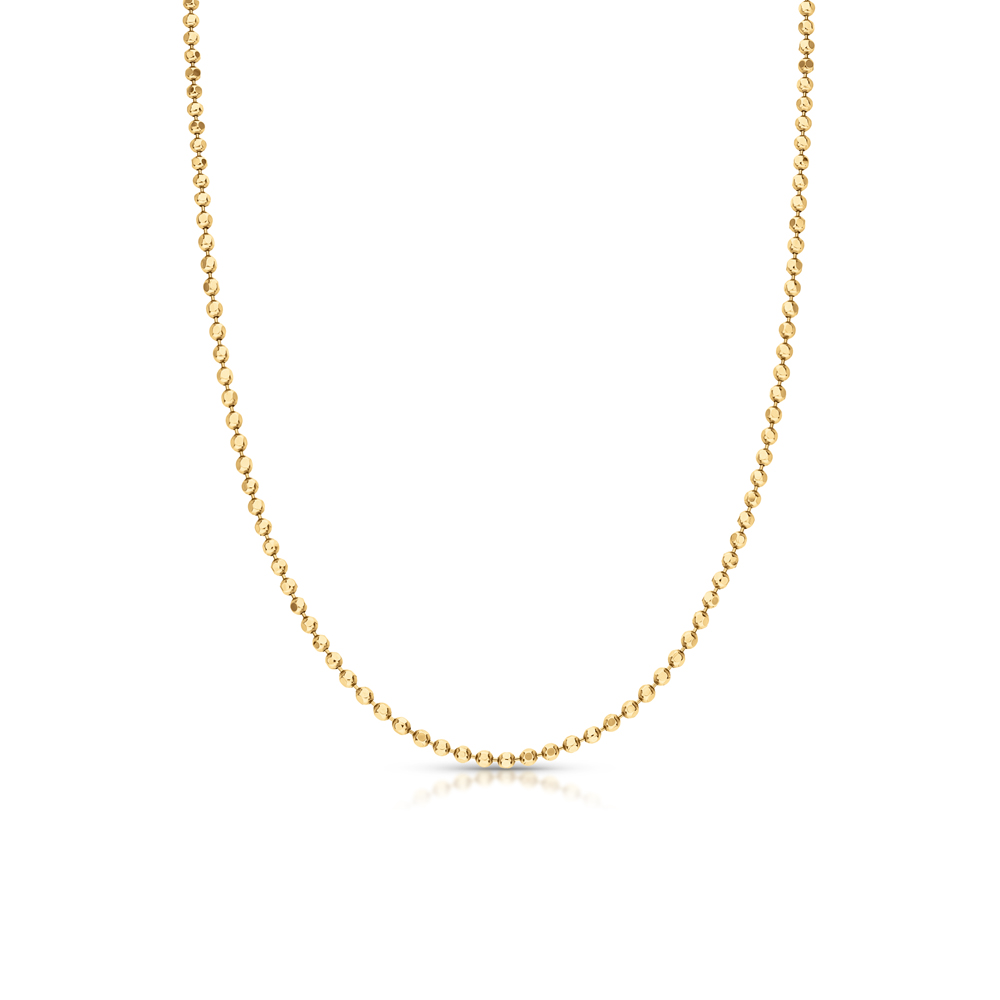 Цепочка с плетением "Перлина" - украшение подчеркивающее вашу женственность. «Pearl» с английского – «жемчужина». Отсюда и название плетения – "Перлина". Цепочка состоит из особых звеньев – шариков (круглых, продолговатых) расположенных на золотой проволоке. Цепочка "Перлина" может быть как самодостаточным украшением, так и носиться с подвесками и кулонами.