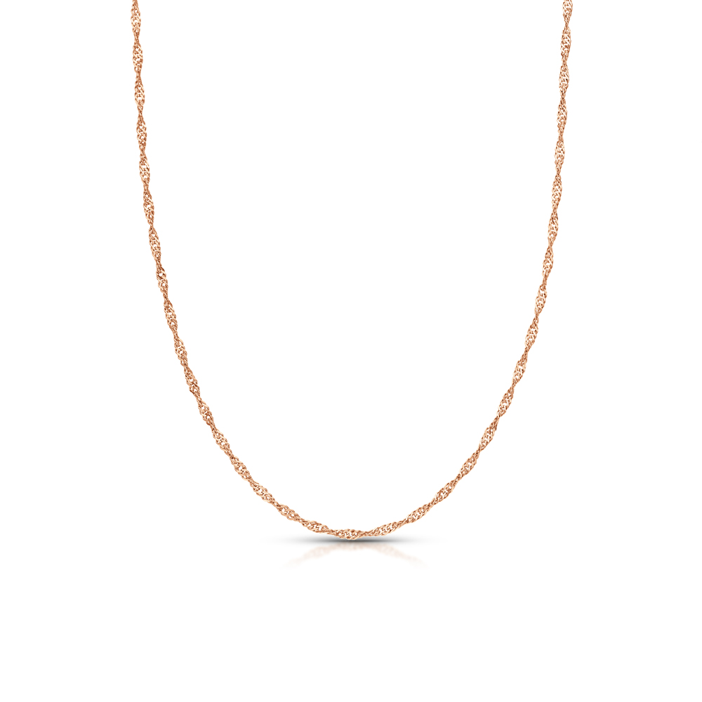 Звенья соединены между собой таким образом, что цепь начинает красиво переливаться. Сложная спиралевидная структура обеспечивает блеск при вращении в лучах света.
