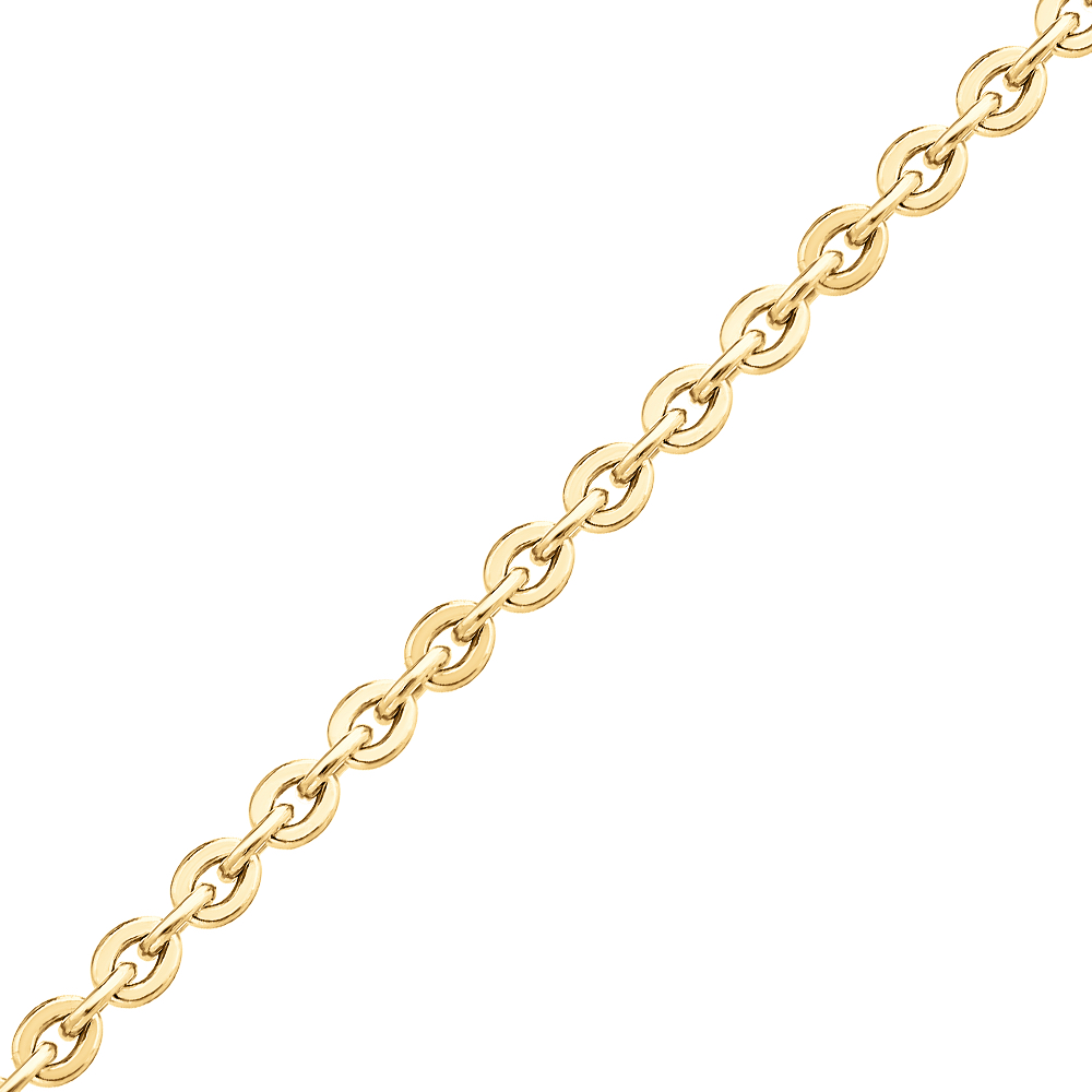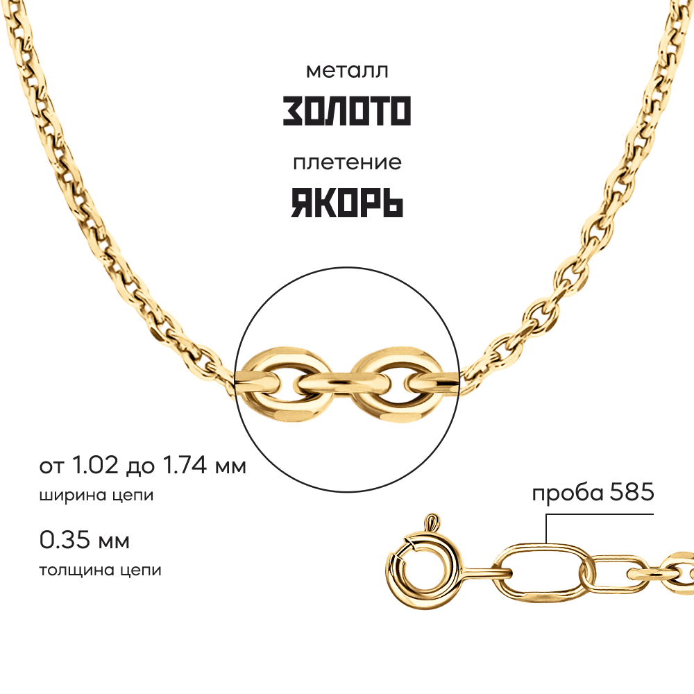 Якорное плетение - настолько надежное, что можно "вешать якорь". Звенья расположены под прямым углом друг к другу, от чего цепь получается объемной и крепкой. Плетение универсально, подходит и женщинам, и мужчинам. Классическая якорная цепь состоит из звеньев продолговатой формы с закругленными концами. Для усиления блеска края обрабатывают алмазной гранью.