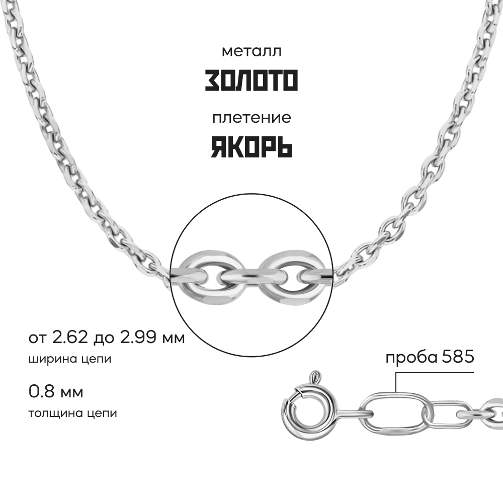 Якорное плетение - настолько надежное, что можно "вешать якорь". Звенья расположены под прямым углом друг к другу, от чего цепь получается объемной и крепкой. Плетение универсально, подходит и женщинам, и мужчинам. Классическая якорная цепь состоит из звеньев продолговатой формы с закругленными концами. Для усиления блеска края обрабатывают алмазной гранью.