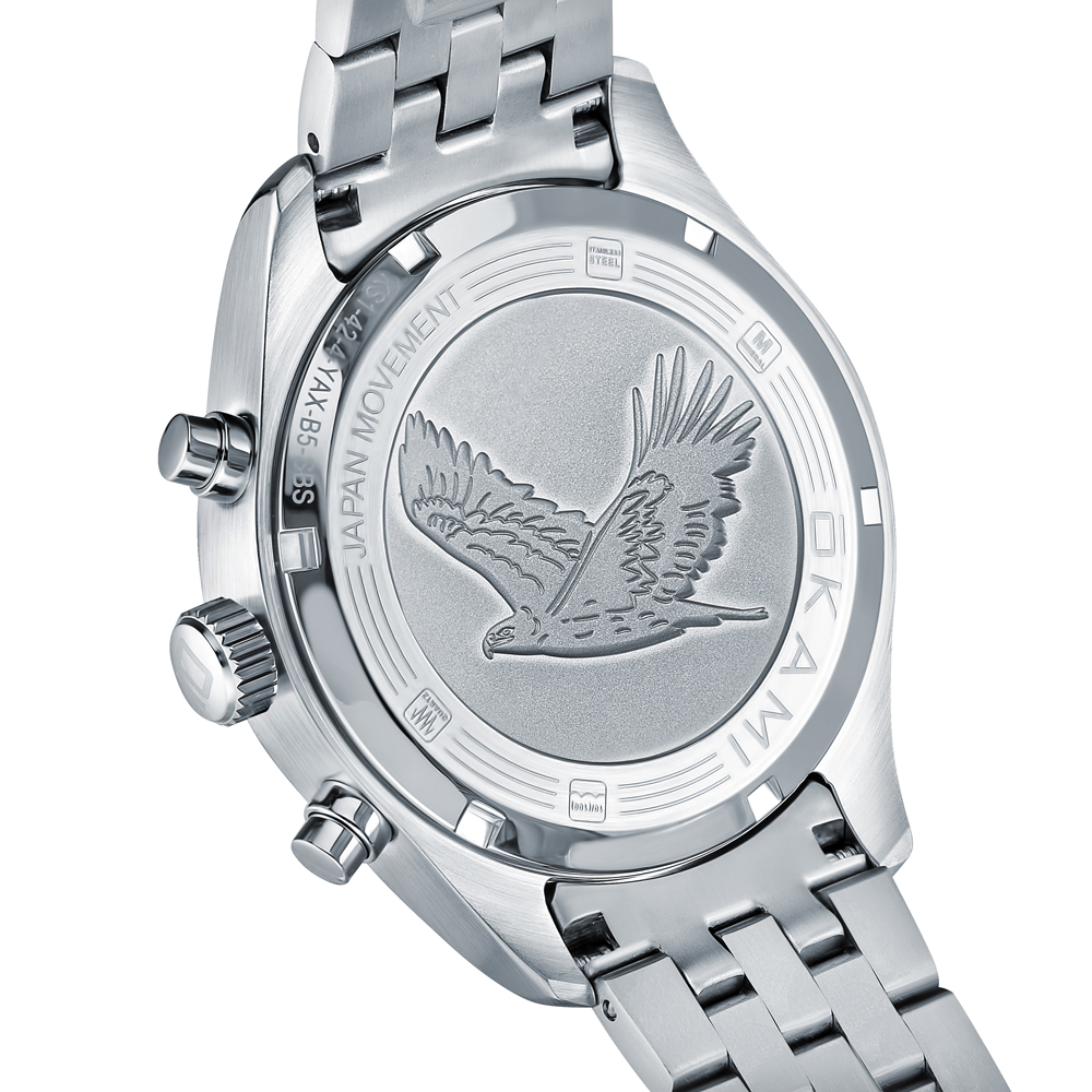 В японской культуре небо считается символом гармонии между человеком и природой. В истории человечества покорение высоты всегда вдохновляло на мировые рекорды. Коллекция SKY отдает дань уважения как пионерам исследователям небесного пространства, так и будущему поколению. Корпус выполнен из стали, минеральное стекло с антибликом защищает циферблат от внешнего воздействия. Японский кварцевый механизм Miyota OS00 обеспечивает точный ход и оснащен функциями времени в 12 часовом формате, дня недели, даты и хронографа. Водозащита 10 bar (100 m/330 ft)* позволяет плавать в часах.