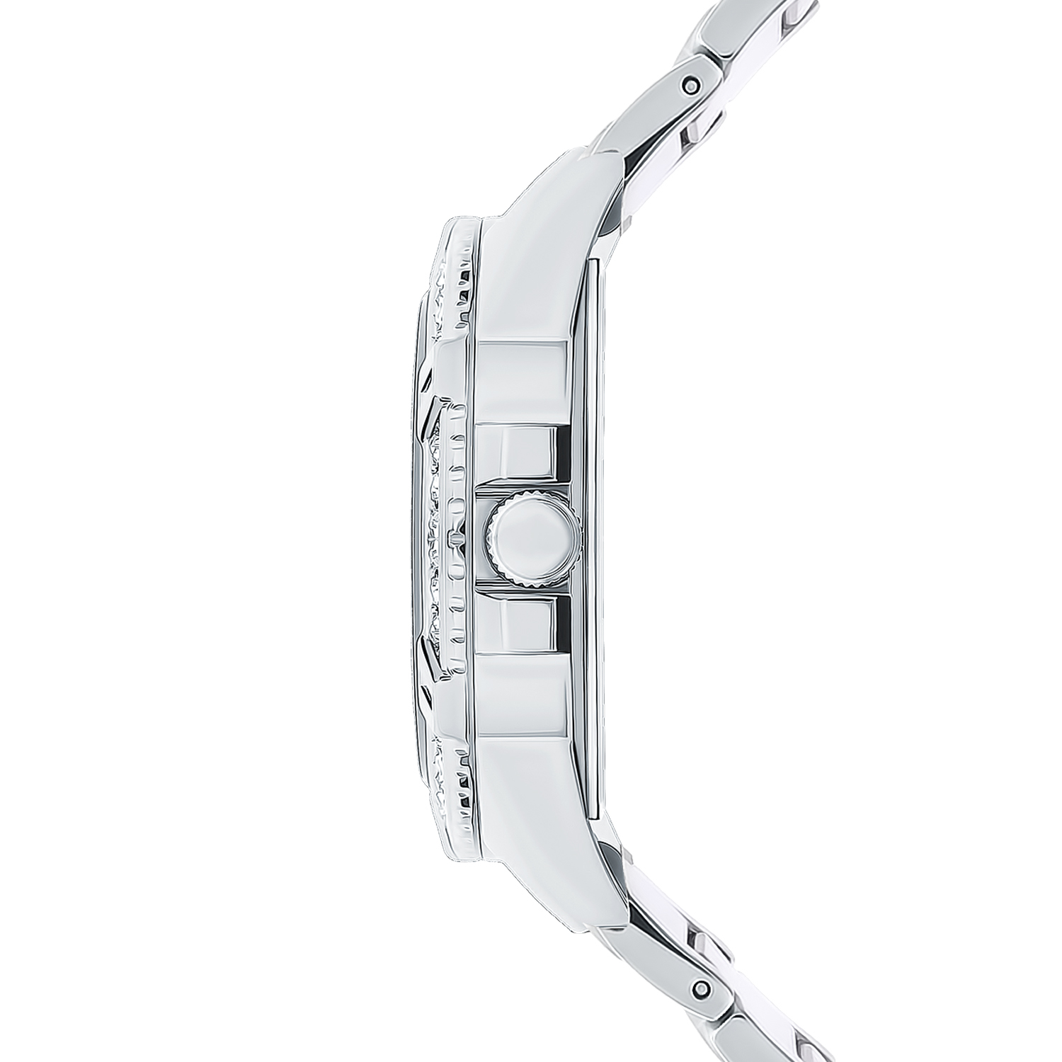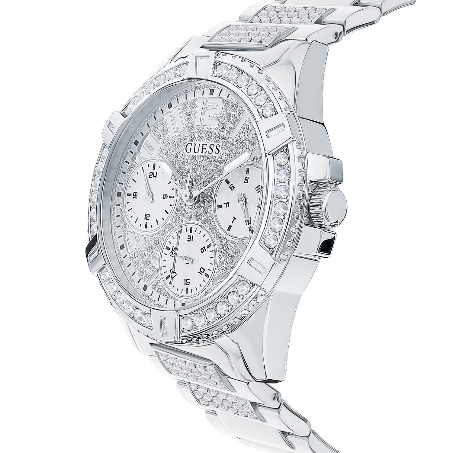 Женские наручные часы GUESS модель W1156L1 из коллекции GUESS TREND. Японский кварцевый мультифункциональный механизм VX7JE1S SEIKO (TMI) с вынесенными на отдельные циферблаты датой, днем недели и часовой стрелкой в режиме 24 часа использующий элемент питания SR927SW. Стальной корпус размера 40 мм. Минеральное стекло. Стальной браслет. Водостойкость 5 АТМ (мытье рук, дождь). GUESS – лидер в индустрии фешен часов по длительности присутствия на рынке и по ширине коллекции, ежегодно создает более 100 новинок. Компания GUESS Watches, основанная в 1984 году в Лос-Анджелесе (США) как пионер революции, возглавила трансформацию часов из простого инструмента для определения времени в стильный аксессуар. Бренд не боится экспериментировать. Разнообразные формы корпуса, сложно декорированные циферблаты, уникальный дизайн браслетов. GUESS – это про тренды и технологии в мире моды. Это яркие и дизайнерские часы, призванные угодить самым смелым фешн-драйверам и энтузиастам моды по всему миру. Страна-изготовитель: Филиппины. При изготовлении используются только надежные Японские механизмы. ВНИМАНИЕ! Заявленная водостойкость гарантируется только при плотно закрытой или закрученной заводной головке!