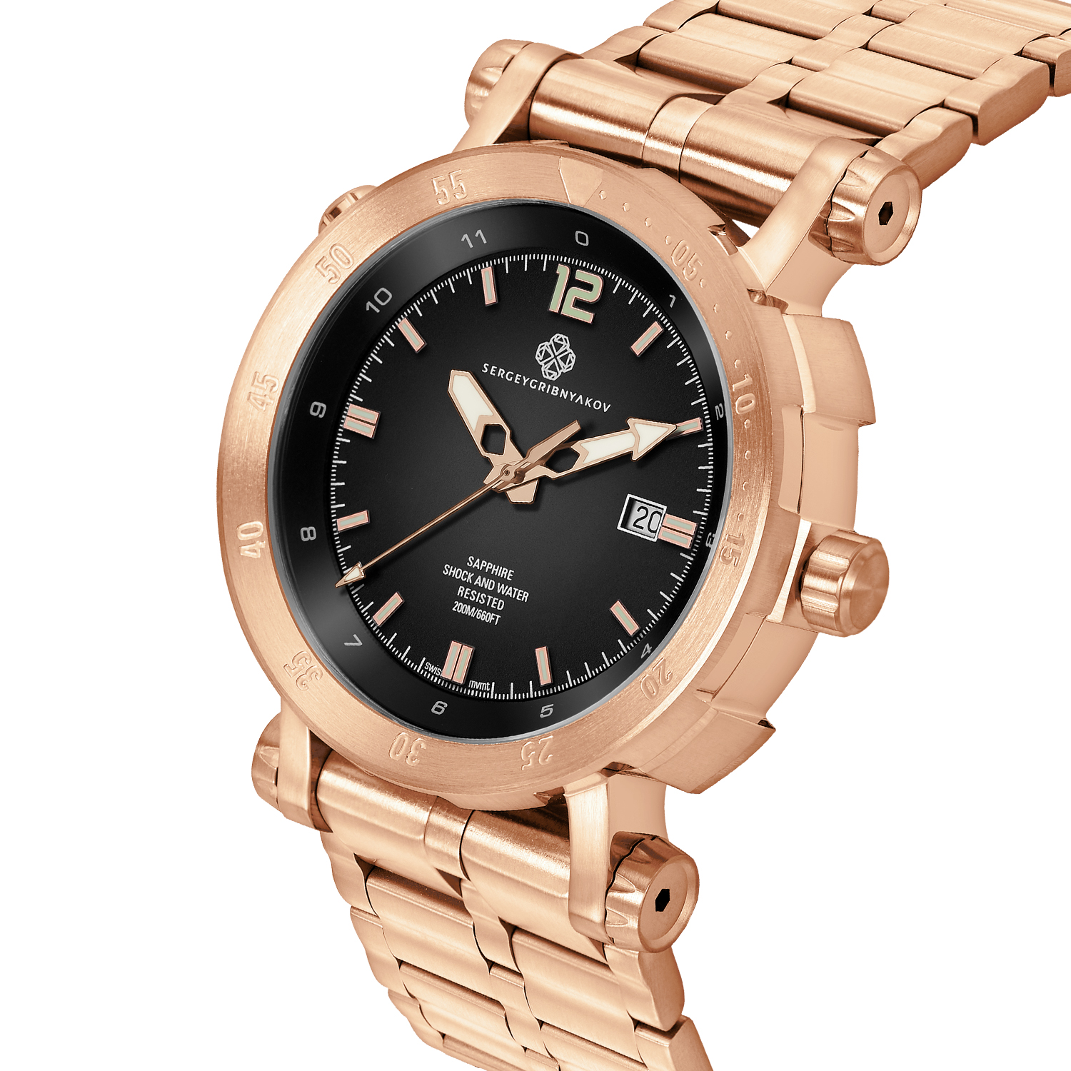 Корпус выполнен из стали 316L, сапфировое стекло с антибликом защищает циферблат от внешнего воздействия. Японский кварцевый механизм Miyota 6S21 обеспечивает точность и оснащен функциями времени в 12 часовом формате, секундной стрелкой и датой. Водозащита 20 bar (200 m/660 ft)* позволяет плавать и погружаться в часах.