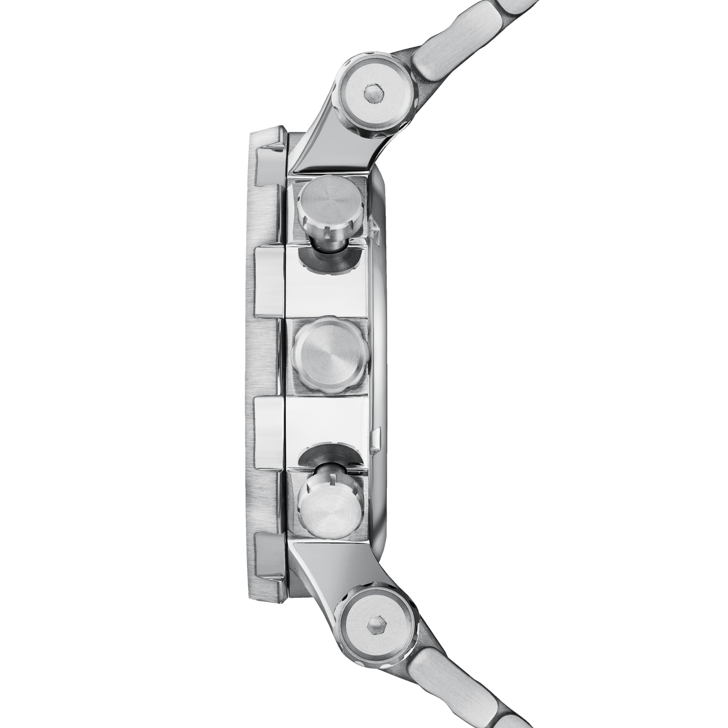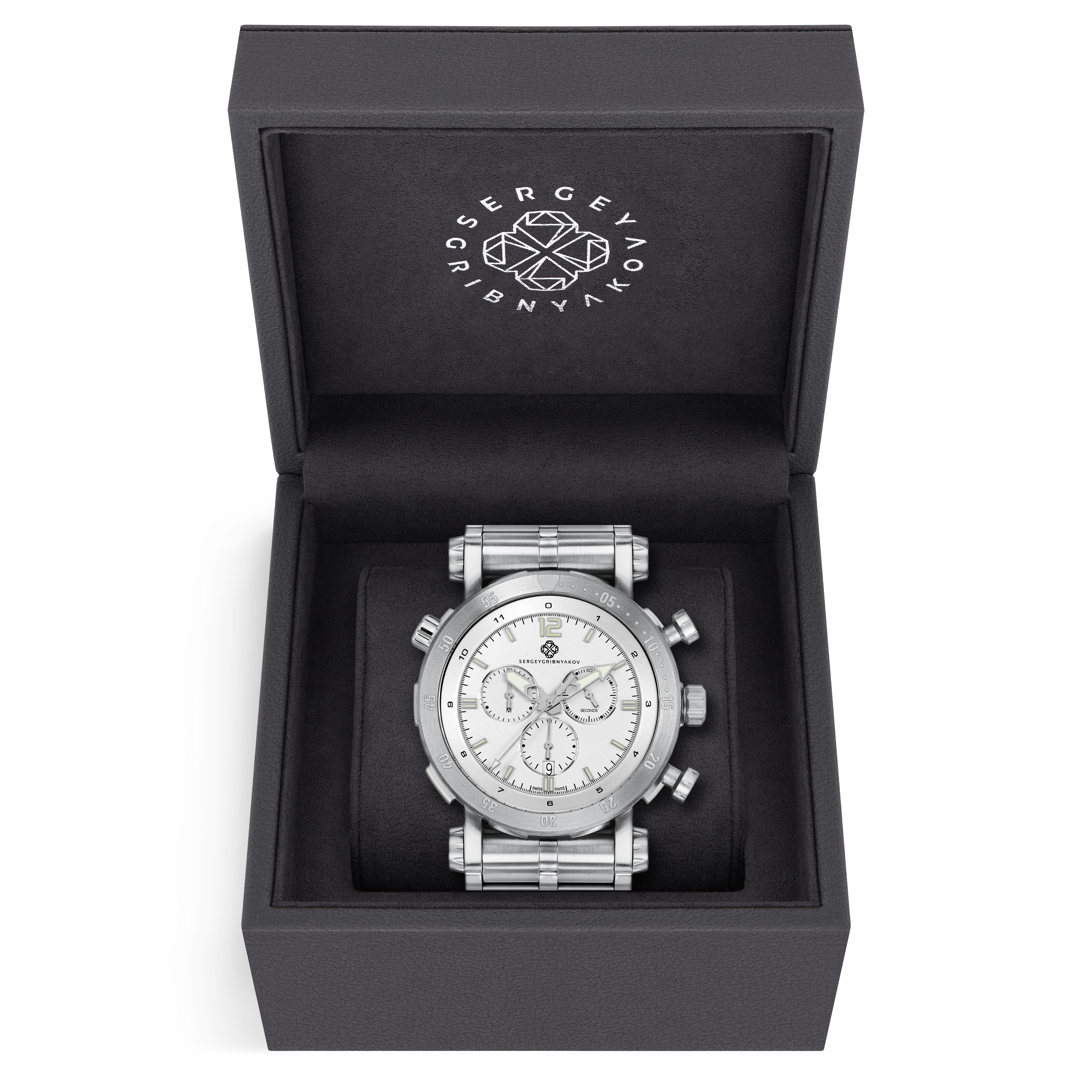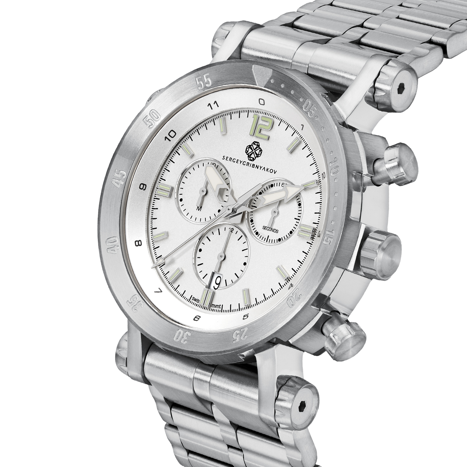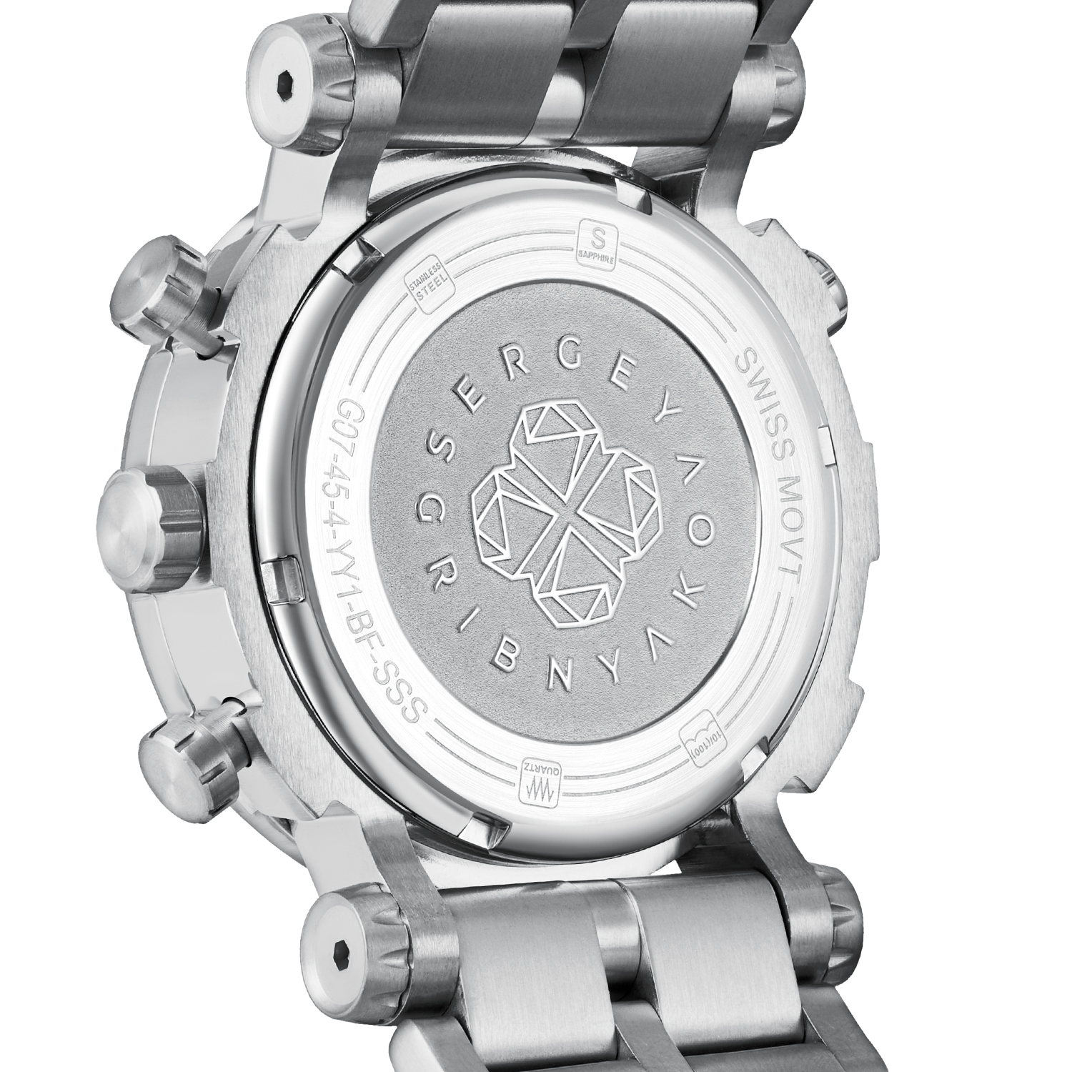 Корпус выполнен из стали 316L, сапфировое стекло с антибликом защищает циферблат от внешнего воздействия. Японский кварцевый механизм Miyota 6S21 обеспечивает точность и оснащен функциями времени в 12 часовом формате, секундной стрелкой, датой и хронографом. Водозащита 20 bar (200 m/660 ft)* позволяет плавать и погружаться в часах.