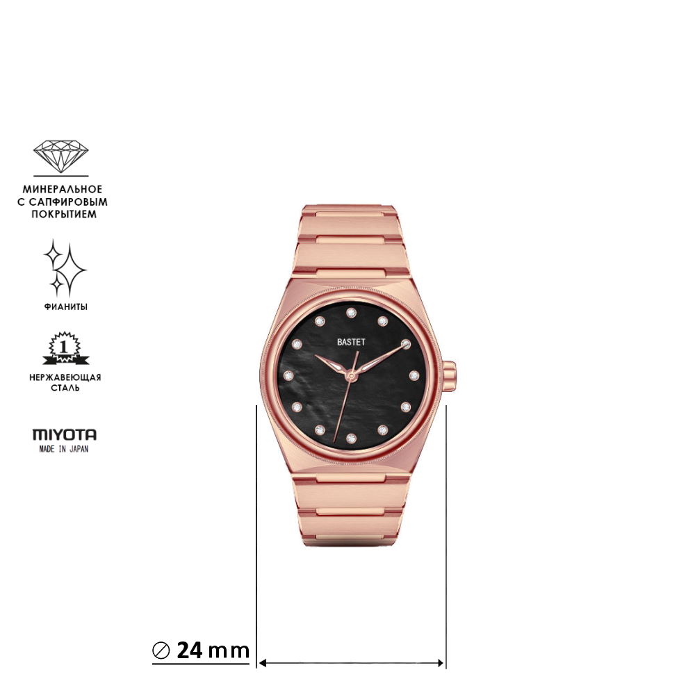 Корпус выполнен из стали 316L, минеральное стекло защищает циферблат от внешнего воздействия. Японский кварцевый механизм Miyota 2035 обеспечивает точность и оснащен функциями времени в 12 часовом формате и секундной стрелкой. Водозащита 5 bar (50 m/165 ft)* позволяет мыть руки в часах, а так же защитит от брызг и дождя.