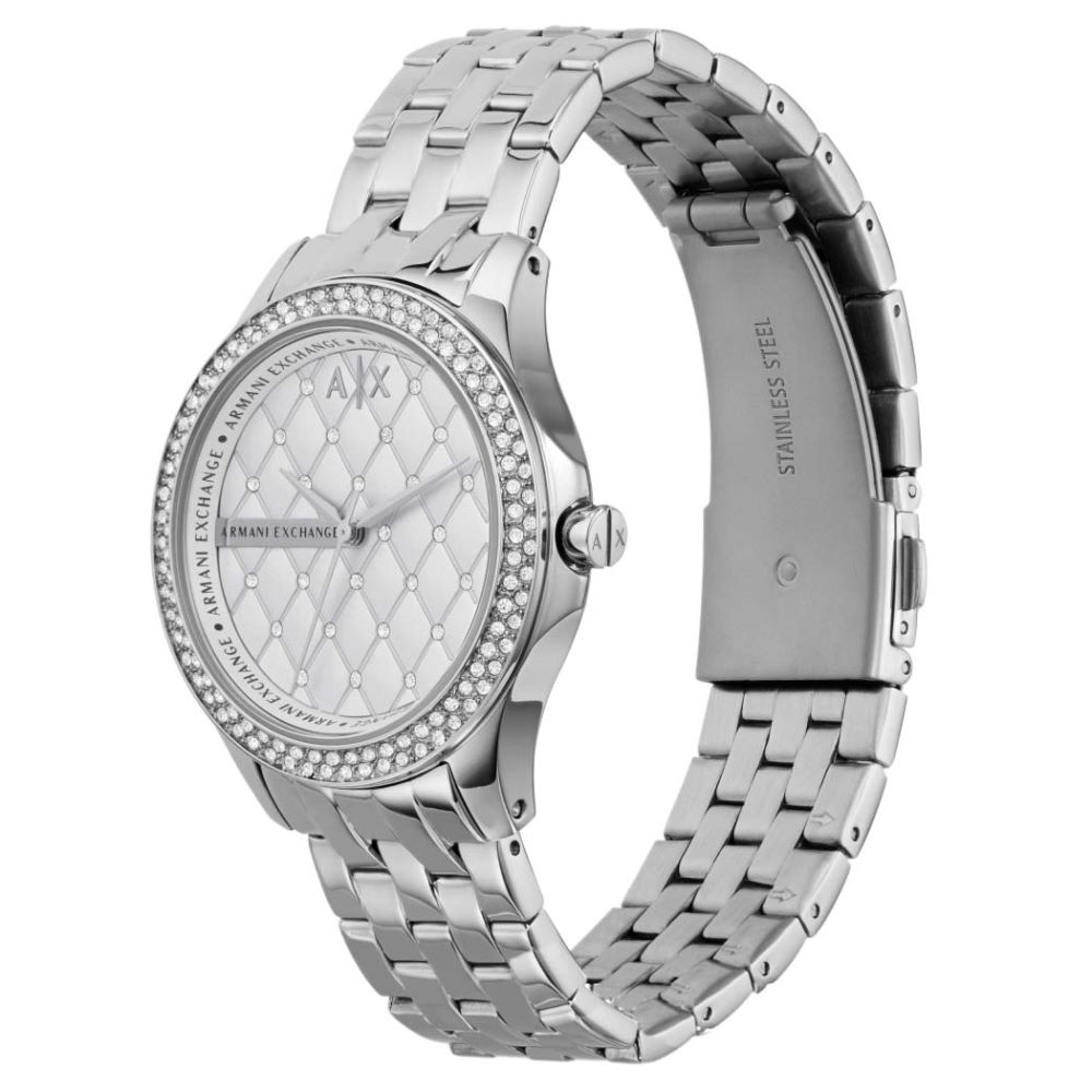 Наручные кварцевые женщинам часы марки ARMANI EXCHANGE артикул AX5215. Стальной корпус размера 36 мм и толщиной 10 мм. Минеральное стекло. Стальной браслет. Водостойкость 5 АТМ (мытье рук, дождь). История всемирно известной компании Giorgio Armani берет свое начало в 1975 году в Милане, когда Джорджио Армани и Серджио Галеотти создали свое предприятие. Спустя пару десятков лет непрерывной деятельности компания была признана одной из лидирующих компаний в мировой моде. В 1991 именитый дизайнер создает бренд Armani Exchange, продукция которого предназначена для городских жителей, не желающих отставать от модных тенденций современности. ВНИМАНИЕ! Заявленная водостойкость гарантируется только при плотно закрытой или закрученной заводной головке!