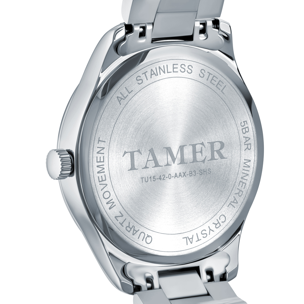 Наручные кварцевые мужские часы марки TAMER артикул TU15-42-0-AAX-B3-SHS. Корпус часов выполнен из нержавеющей стали. Размер корпуса ─ 42 мм. Минеральное стекло. Браслет из гипоаллергенной нержавеющей стали. Водозащита 5 bar (50 m/165 ft) защитит от брызг и дождя. Стильное сочетание текстур и цветов превращают часы коллекции Urban в модный аксессуар современного городского жителя, который может поставить эффектную точку в любом образе.