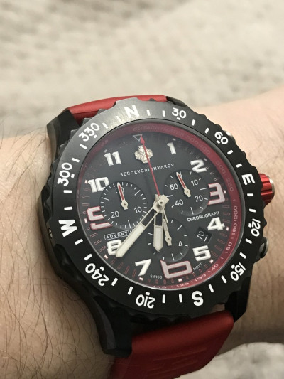 Впечатления положительные. Ношу с удовольствием! Нравятся четкие, острые грани корпуса, аккуратно выполненные детали циферблата, сочетания красного и чёрного цвета. Лёгкие. Стекло не бликует. Каучуковый ремешок быстро почернел, но, видимо, это особенность материала. Не критично. Случайно обнаружил, что эти часы ну просто один в один похожи на часы Breitling Endurance Pro IRONMAN.