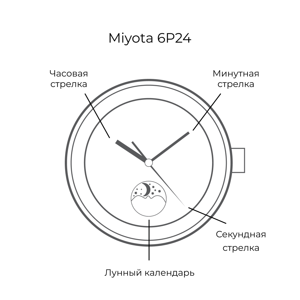 Классические часы стильного дизайна, отражающие традиционные элементы высокого часового искусства. Добавят любому образу элегантности и шарма. Корпус выполнен из металла*, минеральное стекло с антибликом защищает циферблат от внешнего воздействия. Японский кварцевый механизм Miyota 6P24 обеспечивает точный ход и оснащен функциями времени в 12 часовом формате и лунным календарем. Водозащита 5 bar (50 m/165 ft) защитит от брызг и дождя.