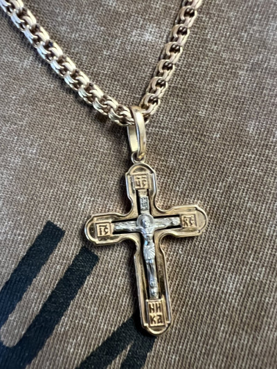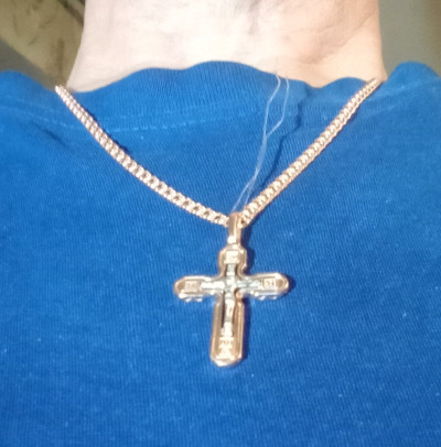 Оооочент долго себе новый крест выбирала. Под цепочку(не маленькую). Все смотрелись или мелко. Или громоздко. Это идеален. Очень довольна