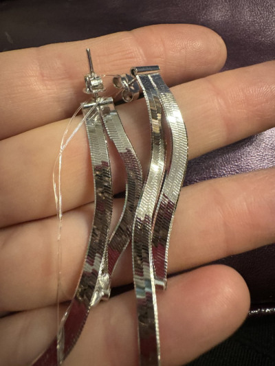 Очень красивые серебряные серьги. Длинные блестящие. Смотрятся благородно.