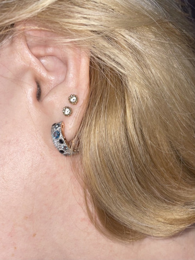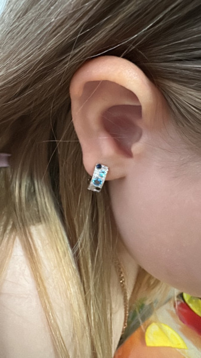 Долго за ними охотилась и наконец приобрела для дочки с хорошей скидкой. Камни сверкают и переливаются, интересная застежка, на ушке сидят отлично