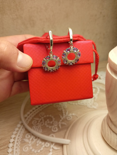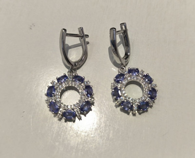 Серьги с 14 танзанитами природными, 2.31 карат;