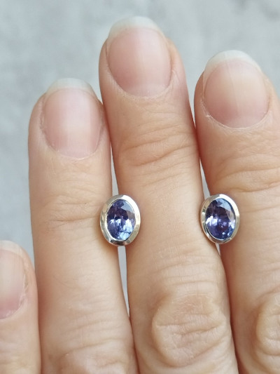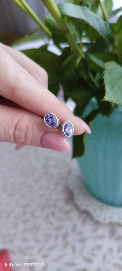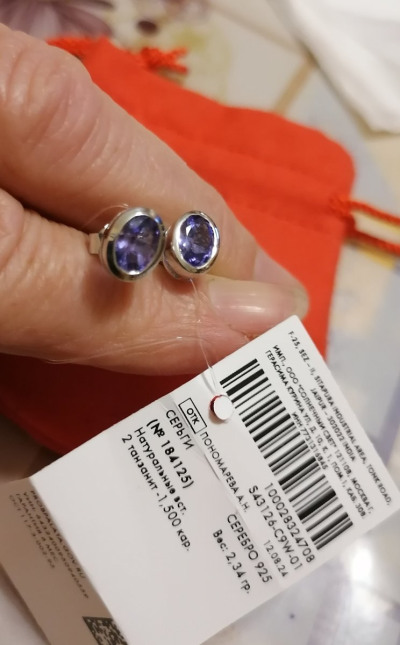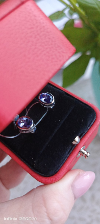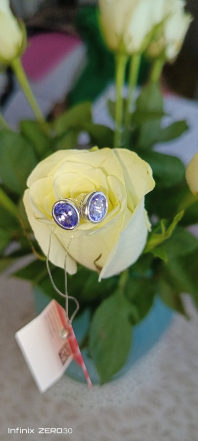 Серьги с 2 танзанитами природными, 1.5 карат;