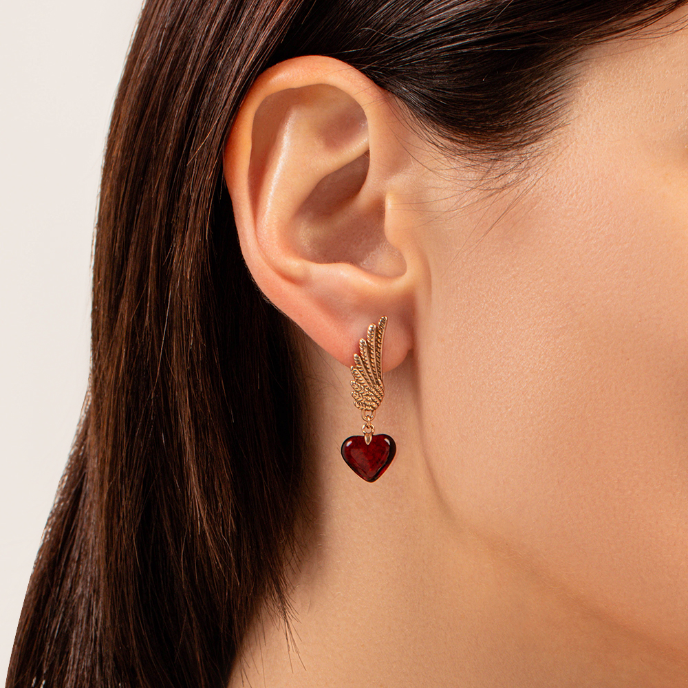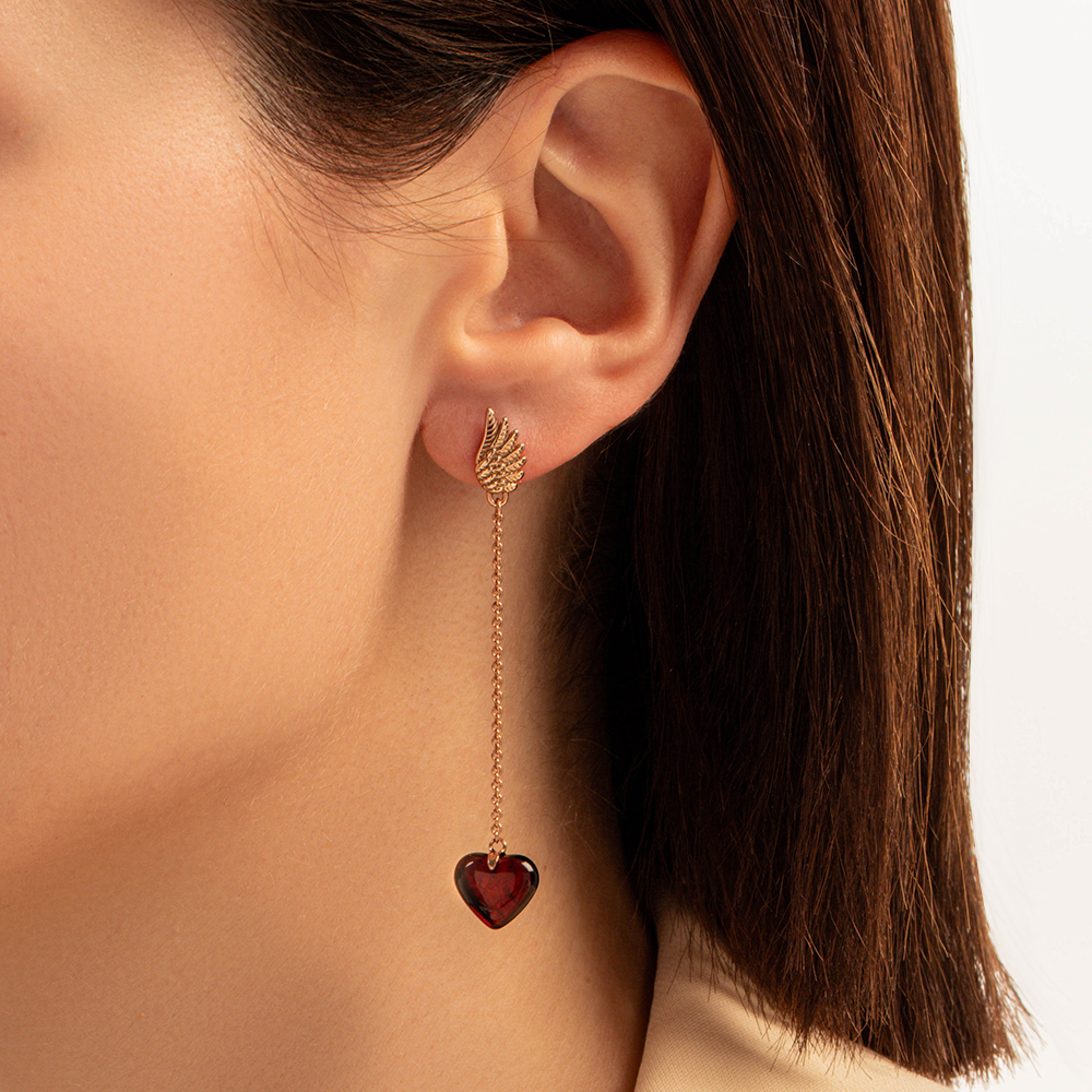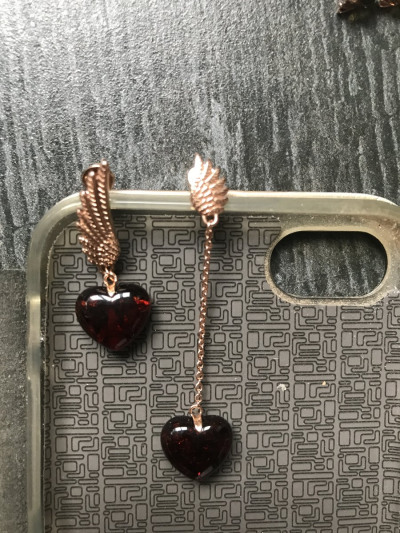 Серьги привлекают своей необычностью. Одна длиннее другой и крылышки. Нежно смотрится. Не тяжелые.