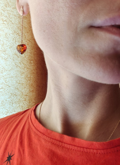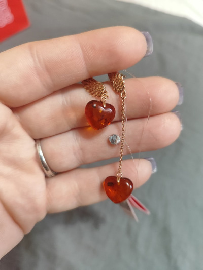 Серёжки замечательные! Смотрятся очень красиво, женственно и стильно. Думала, что камушки сердечки будут меньшего размера, и была приятно удивлена, что они побольше. Очень красиво выглядит, когда на них падает свет, как будто загораются и цвет становится таким ярким, солнечным😍 Довольна покупкой!👍