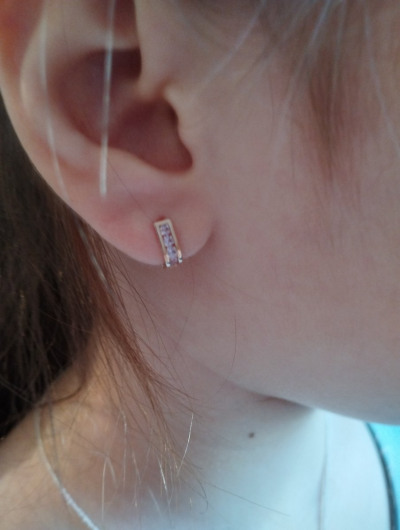 Выбирали долго, именно с английской застёжкой, так как был опыт с другими застёжками, теряли серёжку Моей дочке 5, серёжки и не туго и не свободно на ухе, застёжка хорошая, и внешний вид тоже