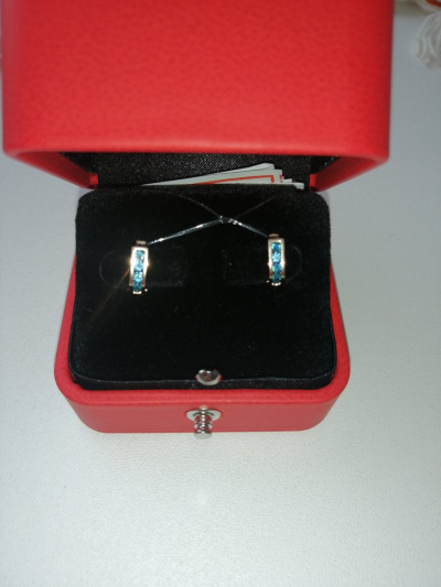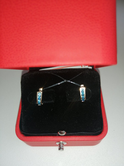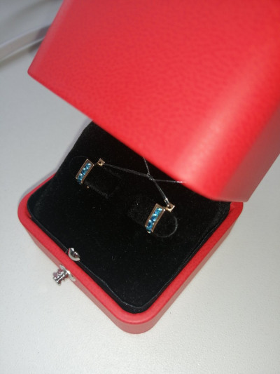 В редких случаях характеристики украшения или упаковка могут иметь отличия от представленных на фото или в описании.Серьги, вставка: фианит голубой;