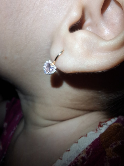Серьги милые, нежные, маленькие. У моей дочери пухлые мочки ушей, поэтому серёжки еле прошли - будьте внимательны при выборе изделия. Боялась, что сережка сломается при вдевании в ушко.