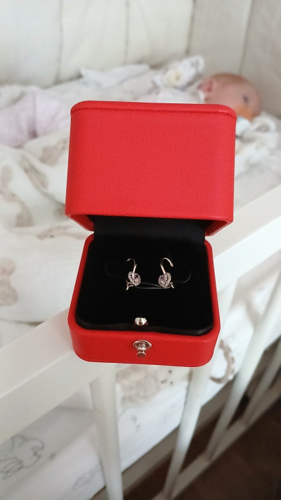 Купила подарочек для новорожденой дочечки. Подрастёт, проколем ушки. Очень нежные и милые серёжки, спасибо большое🥰