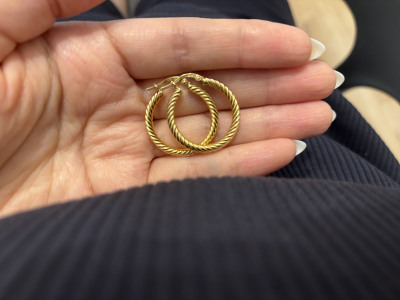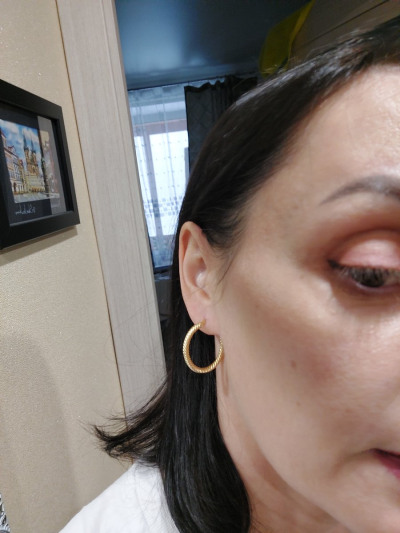 Серьги тончайшие, невесомые, только на выход, иначе просто помнутся. Выглядят шикарно, потрясающее лимонное золото.