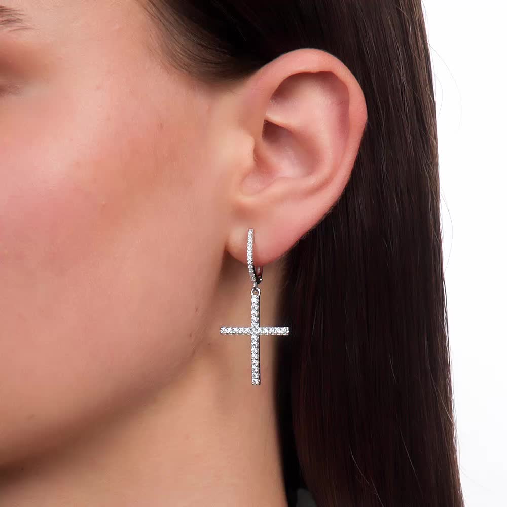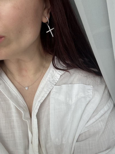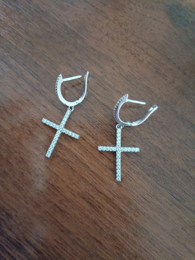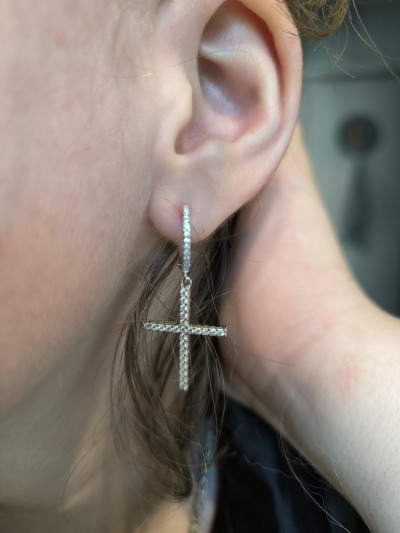 Серьги просто огонь!Они для тех, кто любит яркие запоминающиеся образы. Серьги стильные, заметные, очень эффектные. Блеск камушек освежает лицо. Форма крестика идеальная, правильная.