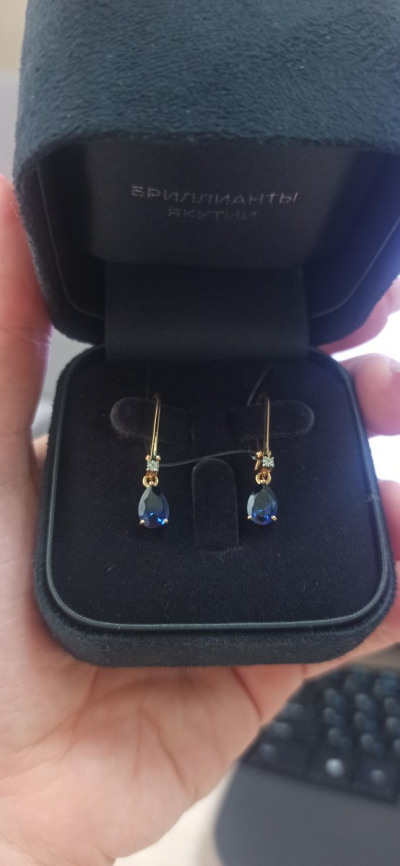 Очень изысканные, утончённые и элегантные серьги. Сапфиры блестят! Подарок любимого мужа на День Рождения)