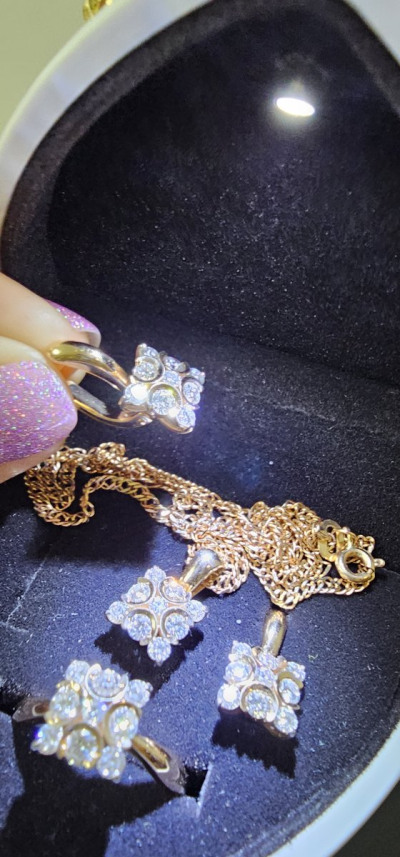 Покупала в комплект к такому же колечку, около года назад купленное. Вот пришло время прикупить и серьги. Была о-очень хорошая скидка. Серьги красивые, заметные, бриллианты сверкают!
