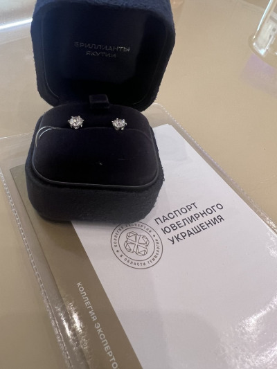 Серьги с 2 бриллиантами природными, 0.8 карат, огранка круг 57 граней, цвет 5, чистота 7, тип огранки А;