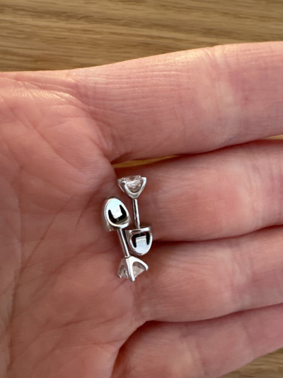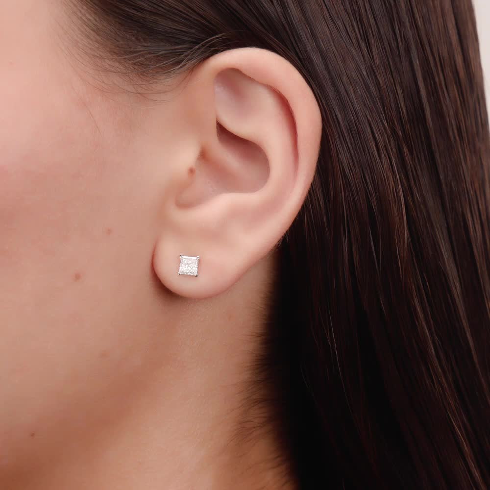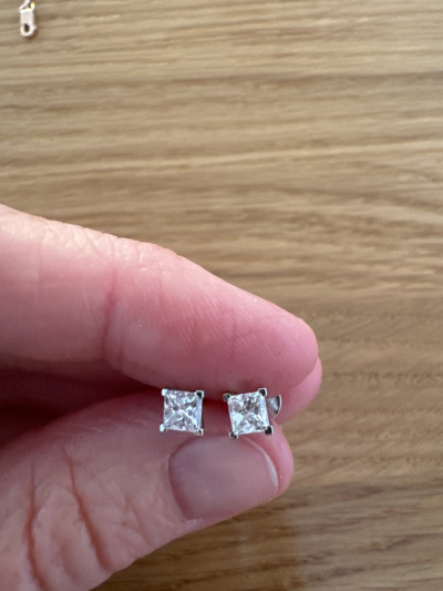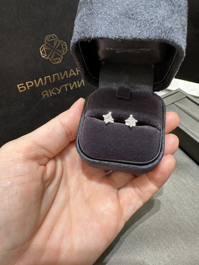 Серьги с 2 бриллиантами природными, 0.81 карат, огранка принцесса 65 граней, цвет 3, чистота 6, тип огранки А;
