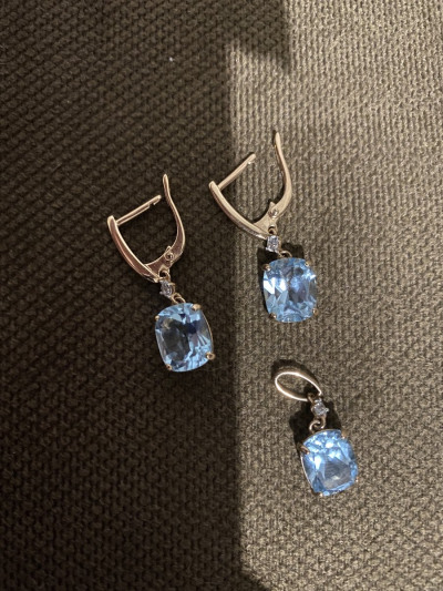 Мечтала о комплекте украшений с топазом и вот мечта сбылась☺️ красивый небесно голубой топаз, прозрачный и сияющий.