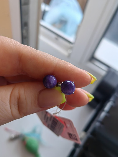 💜💜💜Цвет просто потрясающий! Размер великолепный. На мочке сидят плотно благодаря конструкции