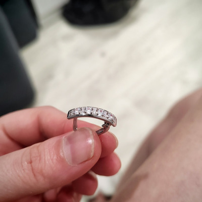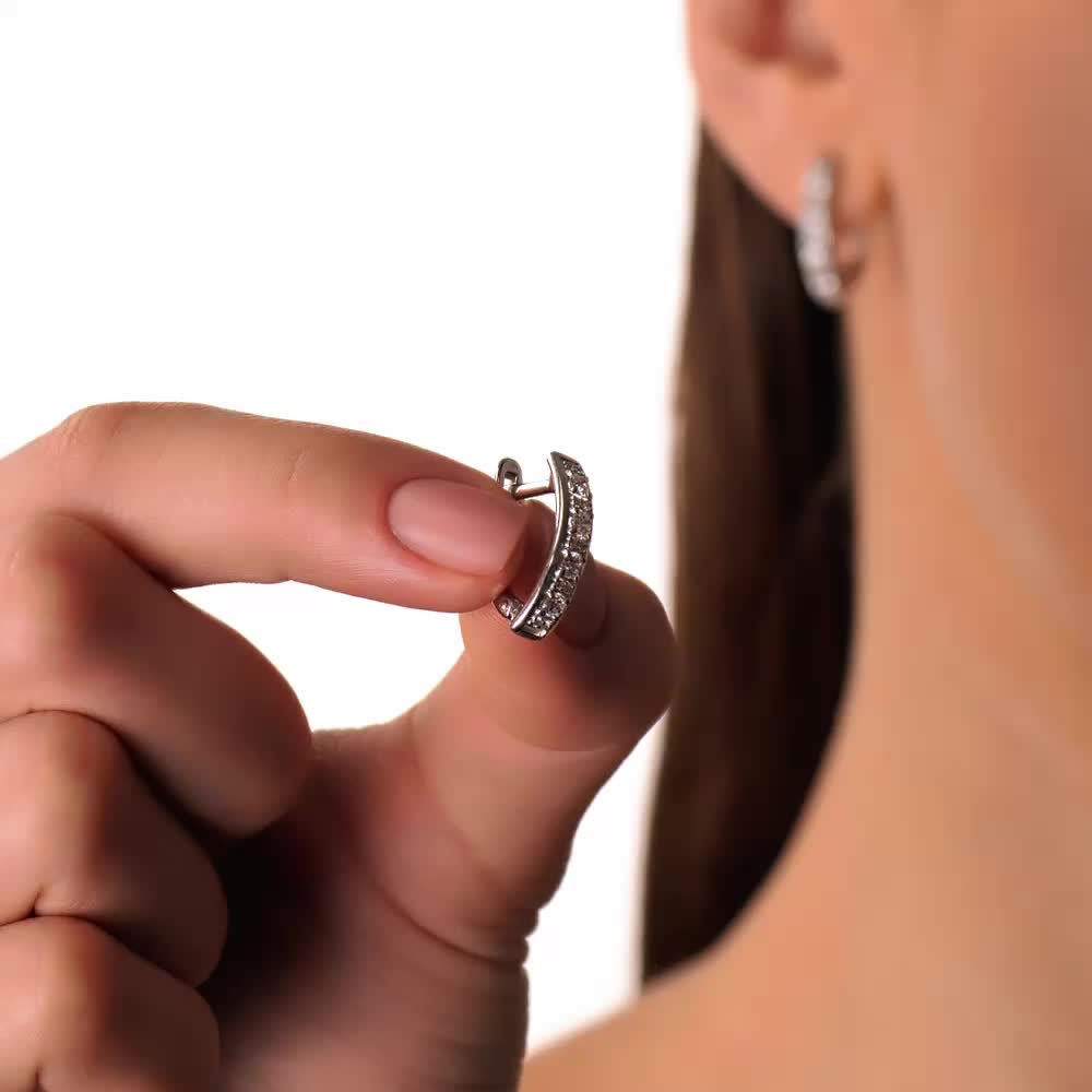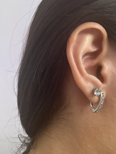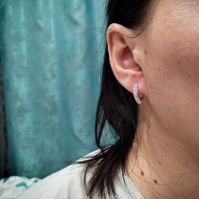 Серьги очень красивые, блестят, хорошая форма, мне под круглое лицо подошли отлично. Немного цепляются за полотенце и волосы, во время сна почти не мешают. Думала их оставить как основные, но присмотрю что-то еще более "гладкое". А так прекрасные повседневные серьги под любой стиль.