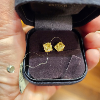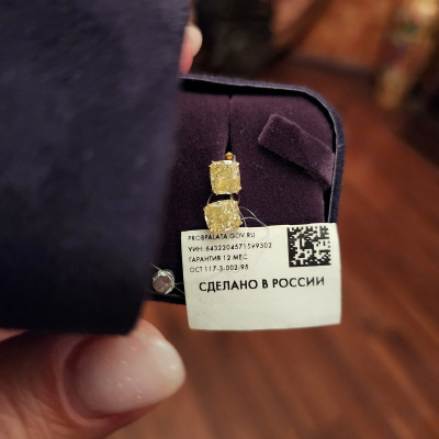 Золотые серьги с бриллиантами жёлтыми природными