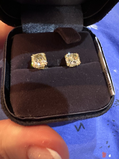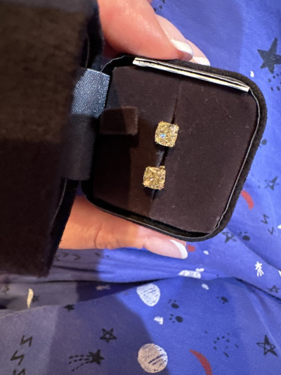 Очень долго высматривала эти серьги.. На них не было скидок. Они чуть подорожали и подарили 150т бонусов.. Это было как приказ- надо брать! Выбирала из трех пар и очень благодарна Татьяне из Бриллиантов Якутии в СПб и Лилии из Москвы я нашла свою идеальную пару. Пришлось даже ехать по работе в Москву и заодно за ними что бы примерить уже на ушке))) спасибо огромное!))