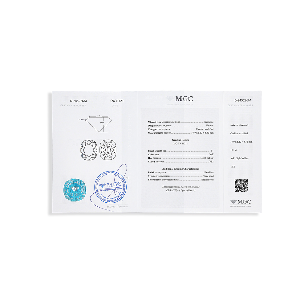 1 бриллиантом природным, 1.22 карат, цвет 8-5, чистота 4, тип огранки А;