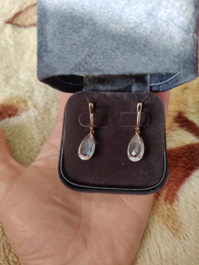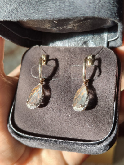 Серьги небольшие, однако очень красивые, давно мечтала о них. Сама модель красивая, нежная , хорошо сидит. Камешек завораживает. Застежки бы только чуть поплотнее.