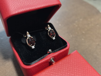 В редких случаях характеристики украшения или упаковка могут иметь отличия от представленных на фото или в описании.Серьги с 2 гранатами природными, тип огранки Б;